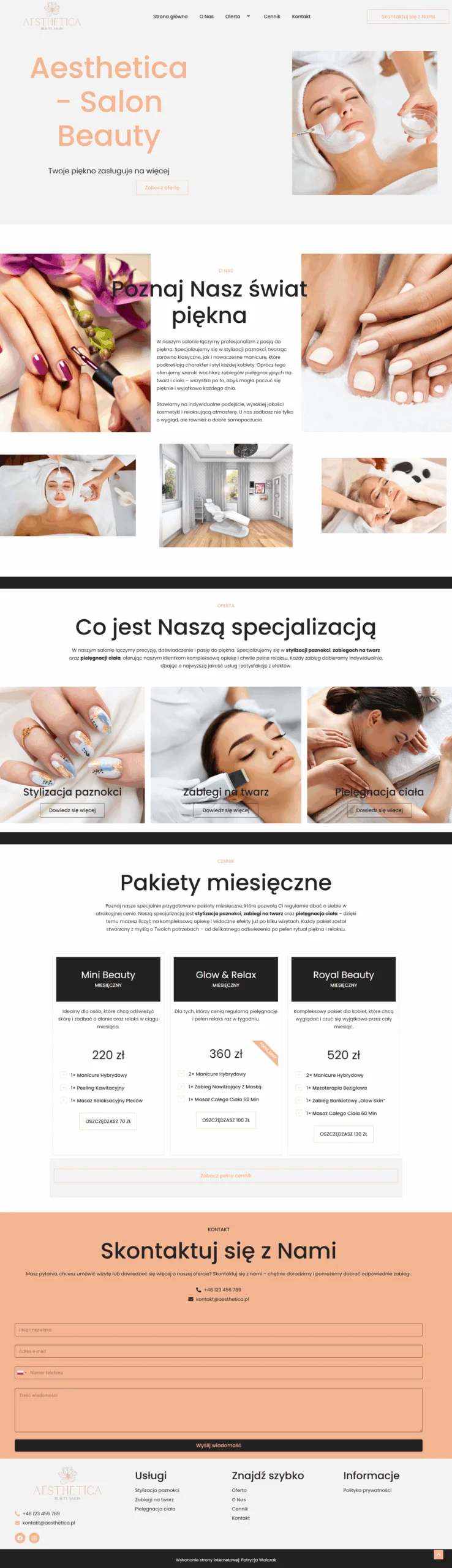 Zanim zacznę pracę nad stroną internetową dla konkretnego Klienta, tworzę koncepcje dopasowane do realnych potrzeb różnych branż. Dzięki temu ćwiczę umiejętności, ale przede wszystkim pokazuję, w jaki sposób projektuję, dbając przy tym o funkcjonalność strony.